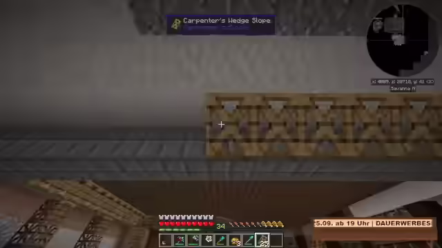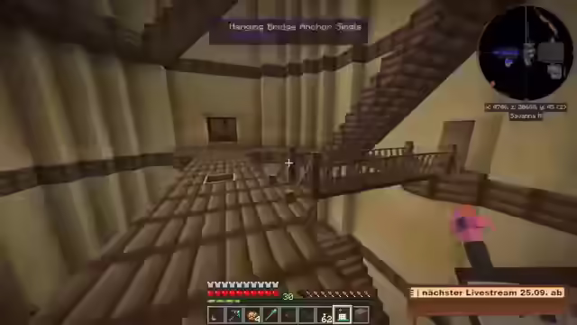 06:32:31Es wird ein Fehler im Design entdeckt und eine Lösung gesucht. Es wird überlegt, ob eine doppelte Holzreihe eingebaut werden soll. Es wird überlegt, einen kleinen Vorsprung zu machen, aber verworfen. Es werden Zuschauerwünsche für das Projekt erbeten. Es wird ein Fehler im aktuellen Design festgestellt. Es wird überlegt, ob man den Bookbinder oder ein Portal einbauen soll. Es wird festgestellt, dass die ganze Bude schief ist und ein Architekt geholt werden muss. Es wird gezeigt, wie ein Raum live entsteht und wie man dabei überlegt. Es werden weitere Burger gecraftet. Das neue System wird als sehr schön empfunden. Es wird überlegt, Portale in den Raum einzubauen, unterteilt mit Kristallen. Es wird gesagt, dass man im Livestream Kristalle farmen wird. Es wird ein Kommentar erwähnt, dass es manchen nicht um die Modifikationen geht, sondern um das, was man selber damit macht. Es wird gesagt, dass man nicht hässlich schnell baut, sondern effizient schnell. Es wird überlegt, die Kristalle auf Podesten zu platzieren. Es wird ein kaputter Stein entfernt und Carpenter-Treppen in Erwägung gezogen.