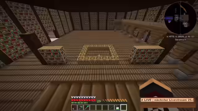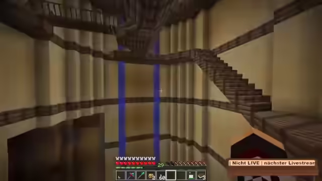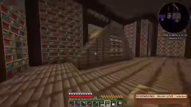 Der Minecraft-Stream konzentriert sich auf den Ausbau der Müscraft-Abteilung und die Planung einer Bibliothek mit Portalen zu verschiedenen Welten. Die Zuschauer werden um Feedback gebeten. Ein Livestream am Neujahrstag um 19 Uhr ist geplant, voraussichtlich ohne Gronkh und Tobi. Es gibt Fortschritte beim Holodeckbau und der Waffenkammer.