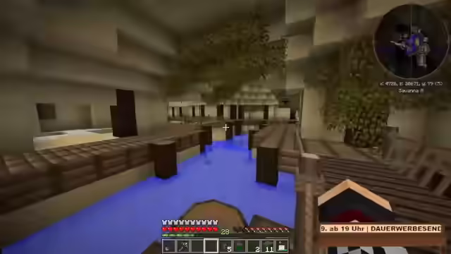 05:27:44Es wird über die Größe und Gestaltung einer Cafeteria und einer Kneipe in der Höhle nachgedacht. Die Cafeteria soll zu bestimmten Tageszeiten Essen anbieten, während die Kneipe abends zur Entspannung dienen soll. Es wird eine persönliche Anekdote über die Kneipe des Vaters erzählt. Der Bau der Cafeteria beginnt, wobei Sitzbänke und eine Wand geplant sind. Die Cafeteria soll möglicherweise höher gebaut werden. Es wird ein Wartungskanal mit einem Chunkloader erwähnt. Probleme mit der Stromversorgung werden angesprochen und die Ursache als fehlendes Licht identifiziert.