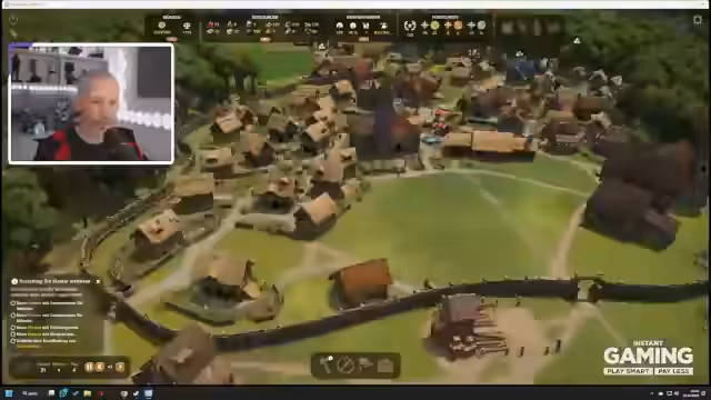00:22:24Die Stadt ist auf 107 Einwohner gewachsen und das Geld ist knapp. Der Streamer hat das Abgabemandat erneut durchgeführt, was zu einer niedrigen Zufriedenheit von 54% führt. Der Streamer beginnt mit dem Bau des Klosters und stellt fest, dass der Rest von allein läuft. Er überlegt, ob die Mauer upgradet werden kann, was jedoch nicht möglich ist. Es werden verschiedene Ressourcen wie Weizen, Holz und Stein benötigt.