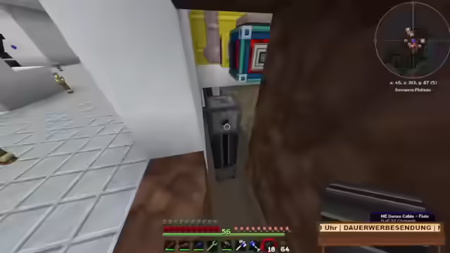 00:45:40Die gebauten Ender Queries werden noch nicht angeschlossen, da die Kapazitäten zur Verarbeitung fehlen. Die Sachen aus dem System sollen entfernt werden, wie die Bücher aus dem Fischer. Es werden Ender Cores verwendet. Auf Endstone wachsen Ender-Lily-Seeds schnell. Das Feld wird nach und nach ausgebaut, um anderen Leuten Enderperlen zu geben. Es wird überlegt, was im Haus gemacht wird. Es wird Dirt benötigt. Es wird im Boden etwas platziert, damit man den Kern sieht, eine Glasscheibe. Alle haben gesagt, mach am Soundmuffler einen Hebel dran, ne? Lever. Es wird getestet, ob der Soundmuffler einen Schalter benötigt. Es wird festgestellt, dass der Soundmuffler keinen Schalter benötigt. Es wird zubauen. Die Kiste steht jetzt oben, da kann man halt die Sachen wieder rausnehmen. Die Wand wird gebaut. Die Loretoil-Blocks werden draufgesetzt. Zino hat die ganze Scheiße erzählt. Carscrafter ist in die Falle gegangen. Es wird nach oben gegangen. Es wird geschlafen. Es wird Erde mitgenommen. Dieser Android, da kommt ja auch immer ganz auf die Frage, wann verwandelst du dich im Android? Da muss man etwa eine rote Pille finden, habe ich glaube schon mal erklärt, ne? Eine rote, ja eine rote glaube ich. Oder halt ein bestimmtes Dorf. Das Problem ist gerade, dass der wohl durch einen Bug nicht spawnt. Wurde mir von unserem Servertypen hier erzählt.
