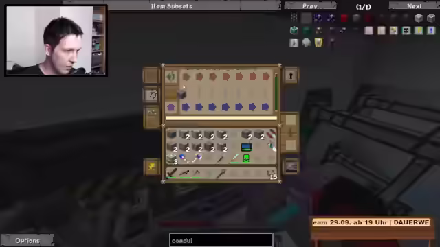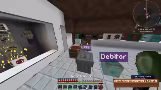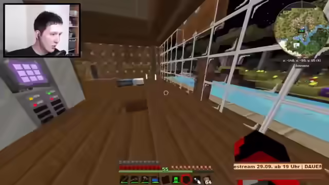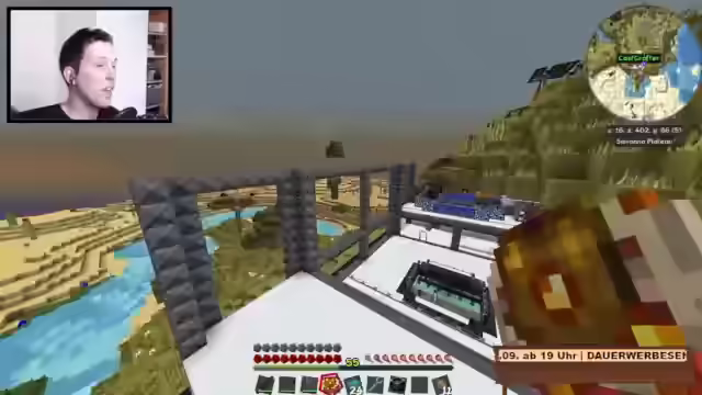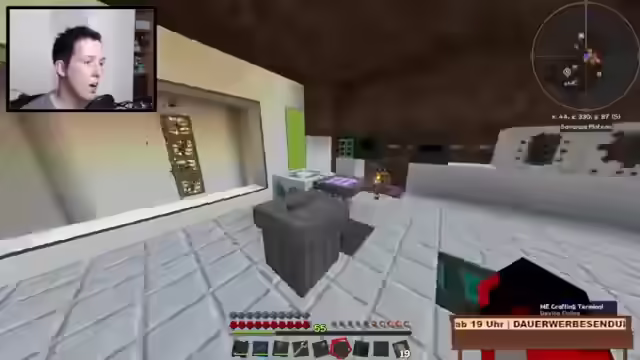 00:00:00Der Stream beginnt mit Arbeiten am Haus, insbesondere dem Bau einer Erzverarbeitung im Keller inklusive Erzverdreifachung. Ein eigenes Bett wurde gebaut. Draußen wird das Haus mit dunklen Bäumen gestaltet, eine Garage und ein Esszimmer mit Anbindung zum Wohnzimmer sind geplant, ebenso wie ein Pool. Der Eingangsbereich ist mit Eckleisten an der Decke versehen. Es gab Probleme mit Kiddies im Chat, die geflamed haben, weil jemand getötet wurde, was aber durch die Regeln gedeckt war, da Griefing verboten ist. Es werden Sticky Pistons für eine Anlage benötigt und Rubber Saplings gepflanzt. Ein kurzer Ausflug in die Hölle vor dem Stream diente der Vorbereitung, um Probleme zu vermeiden. Eine Vakuumtruhe mit starker Saugkraft wird reguliert. Heiko soll beim Reaktor helfen und bekommt Rubber für Sticky Pistons. Es werden Interfaces und Exportbusse benötigt, aber Logic-Prozessoren fehlen, die im Hub besorgt werden. Ein Teleporter-Controller wird benutzt, um zwischen Dimensionen zu wechseln, wobei es Probleme mit der Wireless-Verbindung gab, die viel Strom verbrauchte. Electrolyte Separatoren produzieren Oxygen und Hydrogen für den Purifying-Prozess. Item Conduits werden konfiguriert, um die Ender Query zu bauen. Es werden Kabel und Fluix Crystals benötigt, um das System anzuschließen. Eine Trashcan ist angeschlossen, um das System von unnötigem Müll zu befreien. Der Blaze Spawn wird genutzt, um Blaze Rods zu sammeln. Es gab Angriffe von Monstern im Stream, was zu Kommentaren führte, das Gebiet auszuleuchten. Ein Mega-Creeper könnte eine Gefahr darstellen. Das System soll optimiert werden, indem eine Stack-Mail hinzugefügt wird, um den Rest zu verarbeiten. Item Conduits werden so angeschlossen, dass die Sachen auch hier reinkommen.