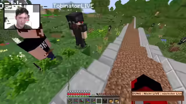 01:45:51Tobi erhält ein Spiegelei als Geschenk, was zu humorvollen Kommentaren führt. Die Pan kehrt zurück, während Tobi möglicherweise Müll oder andere Gegenstände erhält. Es wird über einen Cheeseburger gesprochen, bevor Tobi eine Rüstung erhält und ins Haus gebeten wird. Das Innere des Hauses hat sich seit dem letzten Besuch stark verändert, mit einer beeindruckenden mittelalterlichen Architektur. Ein Trollface-Skin wird kurz erwähnt. Die Rüstung, die auf einem Rüstungsständer präsentiert wird, ist nicht kostenlos und birgt möglicherweise Gefahren. Es wird überlegt, ob Tobi den Müll von jemandem bekommt und ob es sich dabei um einen Penis handelt. Verrottetes Fleisch wird ebenfalls erwähnt, was zu weiteren humorvollen Kommentaren führt. Der Magnet wird wieder aktiviert, und es kommt zu einem Austausch von Gegenständen. Die Rüstung steht für ein bevorstehendes Wagnis bereit, und die Gruppe bereitet sich darauf vor, aufzubrechen.