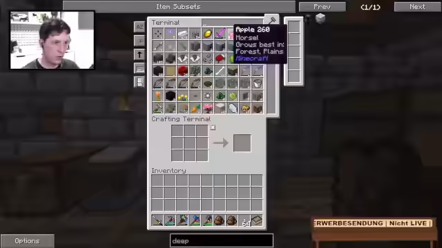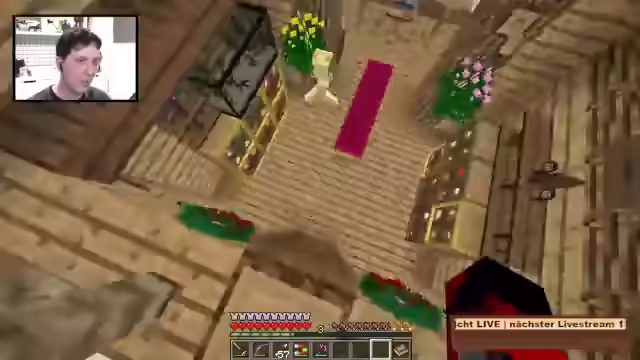 00:22:41Es wird eine Stream-Aufnahme mit Gronkh angekündigt, wobei die Folgen synchronisiert werden sollen. Der Streamer nimmt einen Bedrockium-Barren mit, um Gronkh zu trollen. Beim Einloggen auf dem Server am nächsten Morgen war der Charakter gestorben und alles war weg. Der Rucksack wurde wiederhergestellt, aber nicht alle Items. Es wurde versucht, alles nach bestem Wissen und Gewissen wiederherzustellen. Die Axt heißt jetzt der Entwurzler und das Schwert heißt jetzt Eretian. Die Bio-Beutel und Dick-Sack bleiben leer, da der Inhalt nicht mehr bekannt ist. Es wird nach Sojabohnen und Salatblättern gefragt, um einen Dorfbewohner im Keller zu versorgen, der Emeralds gibt. Es wird erzählt, dass Gronkh auch einen Dorfbewohner im Keller hat. Es werden Cheeseburger gemacht. Es werden verzauberte Bücher, Angeln und Bögen aussortiert. Es wird überlegt, die magischen Sachen zu filtern und den Rest wegzuwerfen. Die Verzauberung Soulbound ist gut, da man die Sache im Inventar behält, wenn man stirbt. Der Server hat kurzzeitig Probleme. Es wird ein Wither getötet. Es werden drei Köpfe hergestellt. Es wird eine Hacke empfohlen. Es werden Cheeseburger gemacht. Es wird eine Quarry gebaut, die den Raum automatisiert. Es wird ein Dark Draw verwendet. Es wird Salz hergestellt. Es wird ein Fertigungsapparat von Endairo angeschlossen. Es wird eine Spitzhacke mit Verstärkt 2, Glück und Eile gezeigt, die sich mit Energie auflädt. Es wird ein gehärteter Fluxkompensator verwendet, um die Tools ladefähig zu machen. Es wird überlegt, drei Crafter zu verwenden, um das Überlaufen von Sojamilch und Butter zu verhindern. Es wird ein Angler reingebaut. Es wird ein Disenchanter verwendet, um Verzauberungen aufzuteilen und zusammensetzen. Es wird überlegt, die Bücher ans E-System anzuschließen. Es wird die Backstage-Verkabelung gezeigt. Es wird die Nummer 5897 Doppelpunkt 3 eingegeben, um einen gehärteten Fluxkompensator zu erhalten. Es werden Cheeseburger geholt. Es wird Salat für den Dorfbewohner geholt. Es wird ein Magnet verwendet, um verlorene Gegenstände aufzuheben.