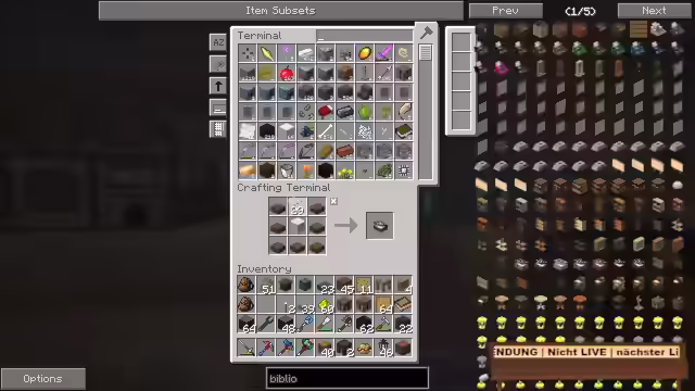 01:10:20Es wird das Inventar aufgeräumt und Marmor in die Vault gebracht. Tobi wird erwartet, um bei einer Expedition ins Deep Dark zu helfen, die als gefährlich eingestuft wird und idealerweise mit drei Personen durchgeführt werden sollte. Es wird überlegt, wie viele Items im Item Cache vorhanden sind, aber es gibt keine klare Anzeige dafür. Eisen wird eingeschmolzen, und Gold soll verdreifacht werden. Ein Lohnspawner wird als Idee für eine Monsterfalle diskutiert. Es wird überlegt, eine ME-Kiste für Thaumcraft-Sachen zu bauen, um das System übersichtlicher zu gestalten. Tobi richtet sein OBS neu ein und stößt zum Stream dazu, um bei den bevorstehenden Aufgaben zu unterstützen, einschließlich des geplanten Ausflugs ins Deep Dark.