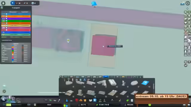 00:00:00Der Stream beginnt mit der Erklärung der Realistic Population MOD, die Gebäude mehr Haushalte als üblich beherbergen lässt, was zu einem realistischeren Stadtbild führt. Dabei wird demonstriert, dass Einfamilienhäuser hier bis zu 105 Haushalte enthalten, was eine große Abweichung zum Standard darstellt. Dies führt zu mehr Verkehrspotenzial in den Stadtbereichen, was Stau und Verkehrsprobleme verursacht. Der Streamer plant den Bau einer U-Bahn-Verbindung und erwähnt dabei das DLC 'Plazas and Promenades' für Platzgestaltung. Es wird diskutiert, dass dieses DLC für etwa 5 Euro erhältlich ist und sich lohnt, besonders im Hinblick auf die bevorstehende Veröffentlichung von Cities Skylines 2. Die U-Bahn wird vorgefertigt und angeschlossen, wobei auch Überlegungen zu Steigungen und Kurven für reibungslose Fahrten angestellt werden.