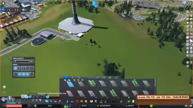 00:04:18Der Streamer beginnt mit der Erweiterung der Stadt durch Wohngebiete und Infrastruktur. Es wird ein Experiment gezeigt, um Staus durch direkte Straßenverbindungen zu reduzieren. Dabei werden auch Grünflächen und öffentliche Einrichtungen wie Schulen und Gesundheitszentren integriert. Ein Fokus liegt auf der Optik: Bäume und Landschaftspflege werden verwendet, um Kanten zu verschönern. Die Flughafenplanung wird eingeleitet, wobei der Streamer eine Straße zum Flughafenareal anlegt und darauf hinweist, dass die Umgebung für zukünftige Erweiterungen vorbereitet wird. Es wird auch kurz auf die Vorbereitungen für den Airport DLC eingegangen, der eine große Fläche benötigt.