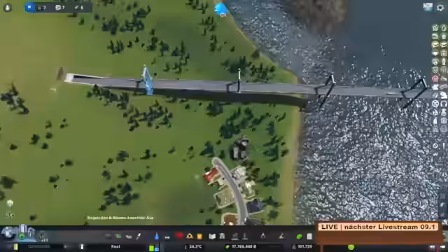 01:57:28Der Streamer dankt den Zuschauern für Vorschläge zum Namen der eigenen Airline und kündigt eine neue Bauphase an. Der aktuelle Flughafen soll bis auf das Terminal komplett abgerissen und durch einen moderneren ersetzt werden. Gleichzeitig wird ein großes Autobahnkreuz geplant, um die Anbindung des Flughafens an das Fernstraßennetz zu verbessern. Die Herausforderung besteht darin, die Autobahn über eine Brücke durch eine Berglandschaft zu führen, wobei Steigungen und Topografie berücksichtigt werden müssen. Es werden verschiedene Bauverfahren diskutiert, um eine optimale Verkehrsführung zu schaffen. Parallel zu diesen Infrastrukturplanungen wird ein的重大es Announcement gemacht: Paradox Interactive hat den Streamer nun im Portfolio und wird ihm frühen Zugang zu Cities Skylines 2 gewähren. Ein Gameplay-Video dazu soll am 8. September erscheinen, was als großer Meilenstein für den Kanal gewertet wird.