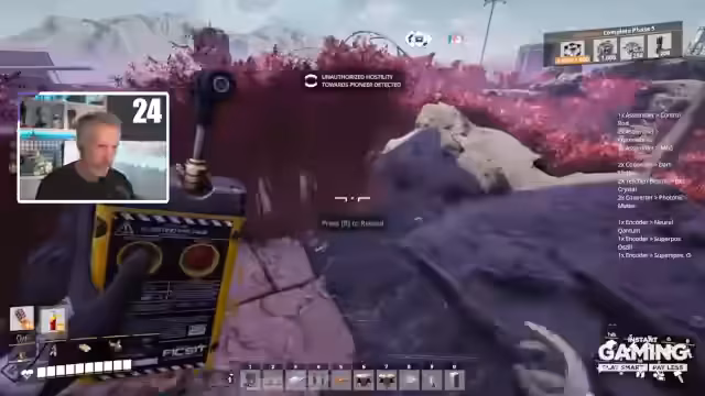 02:10:48Die Wirksamkeit von Nuklearwaffen wird als enttäuschend empfunden, da diese zwar Feinde wegstoßen, aber nicht töten. Dies führt zur Entscheidung, den gesamten Planeten mit Clusterbomben zu roden. Mit einer einzigen Sprengung wird die gesamte Natur instantrazerstört, was den Streamer beeindruckt und das Spiel zum Absturz bringt.