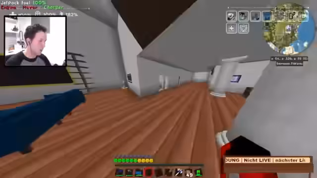 03:12:10Nach den technischen Bauarbeiten auf dem Mond lud der Streamer Peter zu einer Tour durch sein überarbeitetes und eingerichtetes Grundstück ein. Dabei zeigte er die verschiedenen Etagen, darunter ein Büro mit Computeranlage, eine modern eingerichtete Küche, einen Serverraum und eine aufwendige XP-Farm, die mit Bedrockium-Fässern betrieben wird, und unterstrich damit den hohen Detailgrad und den Fortschritt seiner Bauten.