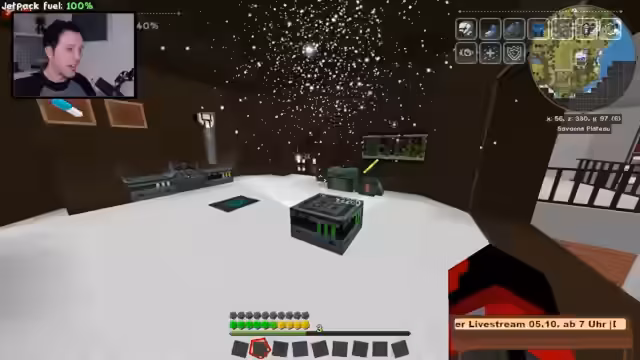 06:20:12Zu Beginn des Streams gibt es technische Performance-Probleme, die den Bau im Haus stark behindern. Der Streamer klagt über starkes Ruckeln und niedrige FPS, was er teilweise auf fehlenden Chunk-Fix und auf andere, unklare Ursachen zurückführt. Trotzdem sind die Pläne für das große Haus und die Mondbasis klar. Auch ein Kooperationsprojekt mit dem Heiko wird erwähnt, dessen genauer Zweck noch unklar ist, aber bald erfragt werden soll. Die Werkstatt und das Haus werden als zentrale Bauprojekte identifiziert, die vorangetrieben werden sollen, sobald die Performance stabil ist.