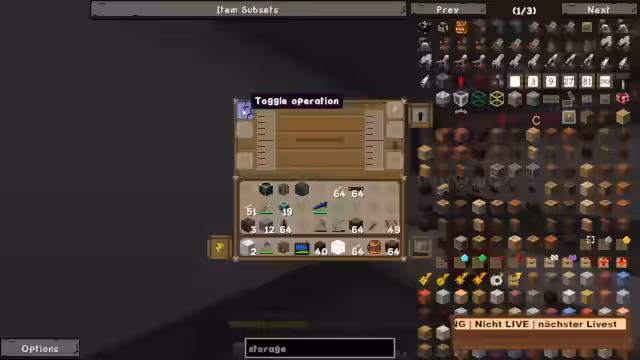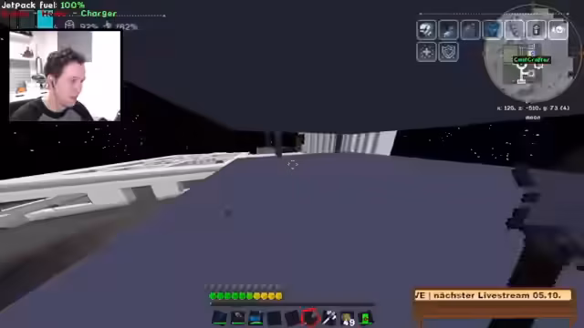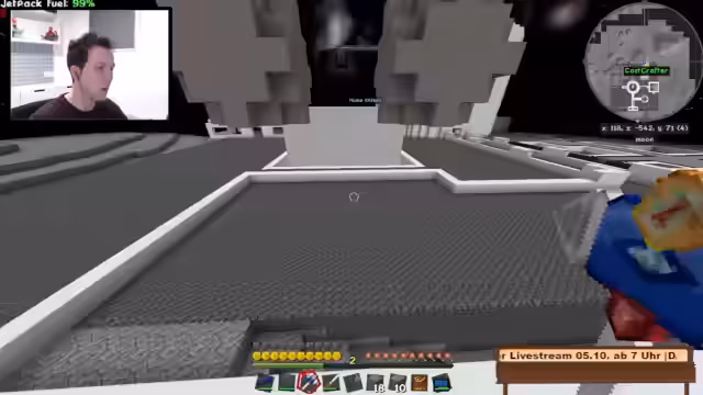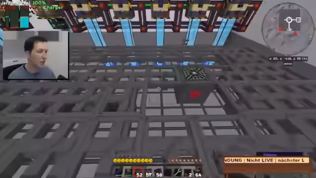11:59:43Die konkreten Bauprojekte auf der Mondkolonie stehen im Mittelpunkt. Der Streamer ist dabei, einen Fahrstulsystem zu craften und benötigt hierfür diverse Rohstoffe wie farbiges Plastik und Zucker, die er teilweise über das Amadron-System bestellt. Währenddessen denkt er über die zukünftige Ausrichtung des Projekts Novus nach und stellt in Frage, ob ein Wechsel zu Craft Attack sinnvoll wäre, da der hohe Offscreen-Aufwand dort seinen aktuellen Zeitrahmen sprengen würde. Er bekräftigt, seinen Fokus auf Novus zu legen, um hier etwas für die Community fertig zu stellen, anstatt nur vanille-Bauten zu erstellen.
