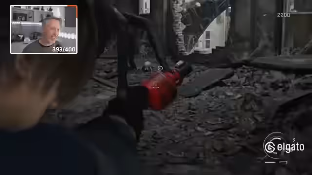 00:07:26Die Mission entwickelt sich zu einer Verfolgungsjagd. Der Streamer sucht verzweifelt nach einer Arzneisspritze und verfolgt Marie durch verschiedene Bereiche. Dabei werden mehrere Gegner auf einmal aktiv, was die Situation kritisch macht. Der Streamer gibt zu, dass der Kampf ohne Heilung und ohne ausreichend Munition sehr schwierig ist, und ist mehrmals knapp an seiner eigenen Niederlage.
