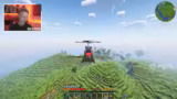 00:24:58Nachdem die benötigten Ressourcen wie Kupfer, Zink und Gold beschafft und verarbeitet wurden, beginnt der Zusammenbau des Flugzeugs. Nach der Fertigstellung wird der erste Startversuch unternommen. Es stellt sich schnell heraus, dass der Gyrodyne, angetrieben durch Muskelkraft, sehr viel Hunger verbraucht und nur langsam vorankommt. Auf dem Weg zum Zielbiom muss der Streamer immer wieder Nahrung zu sich nehmen, was die Reise aufwendig macht.