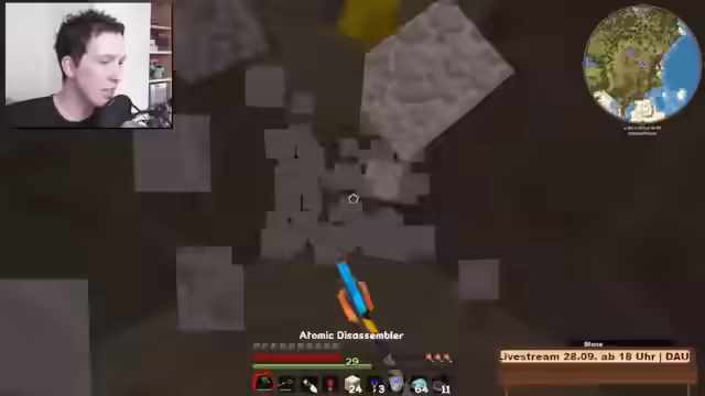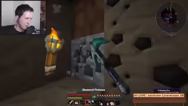 00:11:37Es wird über Erzverdopplung gesprochen, und der Rekord von zwölf Minuten Erzverdopplung wird erreicht. Eine komplette Rüstung und Eisenpickaxe werden ebenfalls in kurzer Zeit hergestellt. Die Spieler finden Clay, das für den Bau einer Schmiede verwendet werden soll. Kupfer wird nicht benötigt. Fackeln werden gebaut, um die Höhle zu beleuchten. Die Spieler tauschen sich über gefundene Erze wie Tin und Osmium aus. Es werden Steine gefunden, die Kohle enthalten. Ein Spieler zeigt seine Beute, darunter eine fast vollständige Eisenrüstung. Es wird Thorium gefunden, das für zukünftige Projekte aufbewahrt werden soll. Ein Spieler teilt Fackeln und Rüstung mit dem anderen. Es werden verschiedene Erze wie Lithium, Gold, Thorium und Saphir gefunden. Ein Diamant wird entdeckt, entpuppt sich aber als Trollblock. Osmium wird gefunden, und die Idee einer Portalgun wird erneut aufgegriffen. Es wird die Befürchtung geäußert, dass andere Spieler vermuten könnten, die Portalgun platziert zu haben, wenn sie gefunden wird.