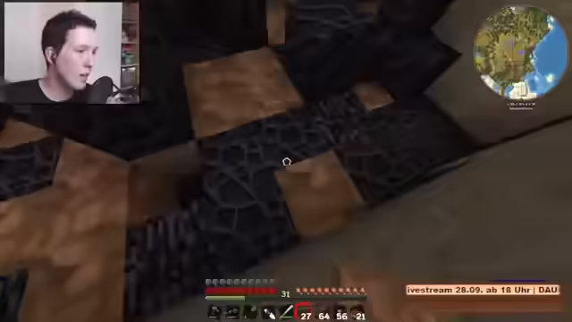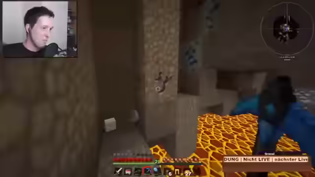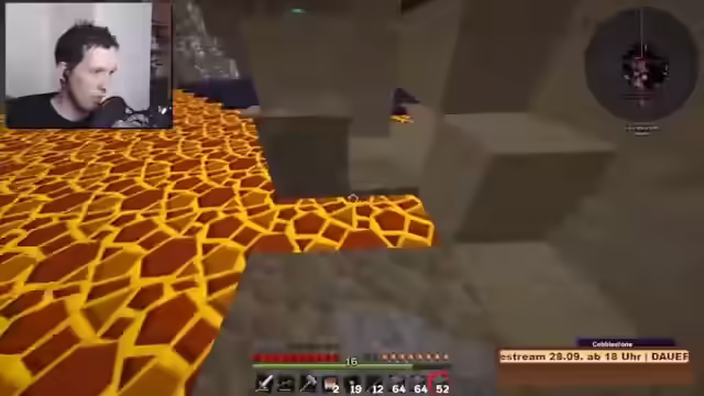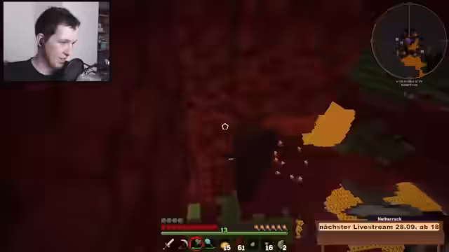 01:35:16Der Streamer begibt sich auf eine Nether-Expedition, um Materialien zu sammeln. Eine Holzspitzhacke wird mitgenommen, in der Hoffnung, einen Lucky Block zu finden. Es wird ein Nether Lucky Block erwähnt. Die Wege in der Hölle sind voll. Der Streamer aktiviert das Portal zur Hölle. Es wird nach einem Weg gesucht, aus dem Berg zu kommen. Kobalt wird gefunden. Es wird über einem Lavasee gegraben. Gras wird entdeckt. Es werden eine Netafestung und ein Slime benötigt. Es wird normaler Slime gefunden. Es wird erwähnt, dass man mit Blumen aus der Wüste Magma-Slime herstellen kann. Eine Festung wird entdeckt. Es wird ein Weg zur Festung gefunden. Es wird Netherbrick geschmolzen, um Netherbrick zu bekommen.