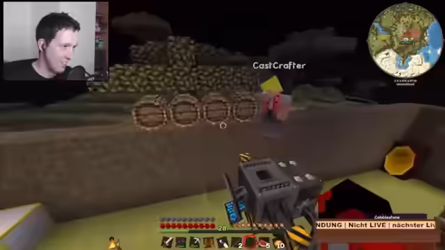 02:41:03Ein Spieler loggt sich in einer Höhle aus und benötigt Hilfe, um wieder nach oben zu gelangen. Es wird festgestellt, dass Steel und Obsidian für den Digital Miner benötigt werden. Das Builderteam wird für den Bau der Map und der Arena gelobt, wobei besonders die aufwändige Konstruktion der Arena hervorgehoben wird. Ein Spieler sucht nach Redstone, während der andere von Monstern angegriffen wird. Es wird über den Verlust des Ausgangs aus einer Höhle gesprochen und die Notwendigkeit, frühere Folgen anzusehen, um den Weg zurückzufinden. Diamanten werden gefunden, aber die Fortschritte im Spiel werden als langsam empfunden. Es wird die Nutzung einer Waffe gegen die Monster erwähnt. Der Digital Miner wird als bessere Alternative zur Quarry angesehen, da er gezielt Ressourcen abbauen kann, ohne unnötige Löcher zu hinterlassen.
