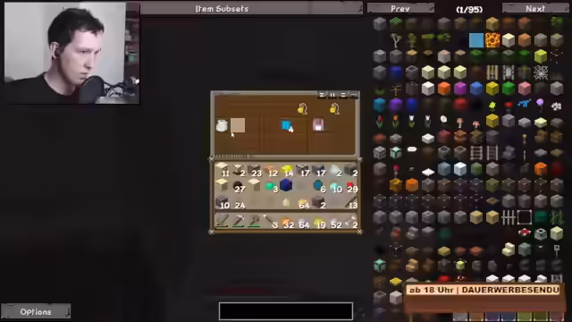 00:48:58Der Stream beginnt mit Problemen beim Dieb Dark Modul und dem Verlust des Skins. Trotz anfänglicher Schwierigkeiten konzentriert sich der Streamer auf die Beschaffung von Materialien, insbesondere Wolle für einen Elevator und ME-Kabel. Die Suche nach Wolle führt zur Entdeckung von Schafen und deren Schur, wobei der Streamer pingelig auf weiße Wolle achtet, um das System nicht zu überlasten. Es wird ein Angel Ring erwähnt, der das Rennen ermöglicht. Der Streamer erklärt die Funktionsweise eines Fahrstuhls und äußert sich zu Chisel-Blöcken, wobei er unterschiedliche Meinungen der Zuschauer erwartet. Das Ziel ist der Bau eines Fahrstuhls und Versorgungsschachts, wobei der Streamer feststellt, dass sich die aktuelle Unternehmung nicht gelohnt hat und über den Einsatz einer Voidpipe nachdenkt. Es wird die Notwendigkeit eines Gleichrichters für Copper betont und der Crystal Grow Chamber entdeckt, was zu Überlegungen über den Bau eines 4K-Desks führt. Der Streamer äußert seinen Hass auf unordentliche Löcher und betont die Bedeutung von Stil, insbesondere für die Werkbank zum Mond. Der Bau des Fahrstuhls gestaltet sich als langwierig, was zu Überlegungen über einen Importbus führt. Es werden Slimeballs und Stickipisten für den Bau benötigt.