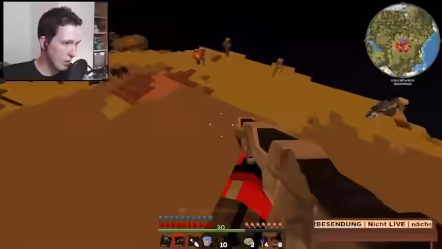 02:03:18Die Streamer suchen nach Spinnenbäumen, unter denen sich eine Kiste mit einer Portal Gun befinden könnte. Einer der Streamer findet etwas Geiles: einen Biome-Kopierer, mit dem man Biome einsaugen und woandershin übertragen kann. Es werden Witze darüber gemacht, dem anderen eine "Fickwüste" auf seinen Kanal zu machen. Sie laufen in verschiedene Richtungen und finden Köpfe und fliegende Saurier. Einer der Streamer hat Schleimwolle und bietet sie für Eisenbarren an. Sie werden von fliegenden Sauriern angegriffen und suchen Schutz. Es wird überlegt, ob man Bier brauen kann, da Hopfen vorhanden ist. Ein Endermage wird getötet und ein Eistab gefunden.