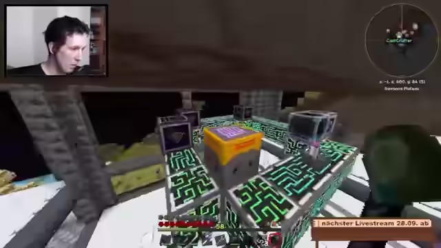 01:00:01Der Streamer verbindet sein ME-System mit dem von Carscrofter mithilfe von Wireless-Connectoren und Interfaces. Es wird festgestellt, dass das System viel Energie benötigt. Es folgt ein Test des Teleporters, bei dem ein Mitspieler in eine Falle gerät und stirbt, was zu Gelächter führt. Der Streamer plant, die Falle weiter zu perfektionieren und sichert sie mit Blockbreakern. Es wird überlegt, ein Teleportsystem in der Nähe zu errichten. Der neue Hub, der sich in einer Compact Machine befindet, wird vorgestellt, und die Möglichkeit, Items zwischen den Systemen auszutauschen, wird demonstriert. Der Streamer betont, dass er gerne hilft, es aber nicht gut findet, wenn einfach alles aus seinem ME-System entnommen wird. Es wird überlegt, eine Vakuum-Chest zu bauen, um das Autocrafting zu verbessern.