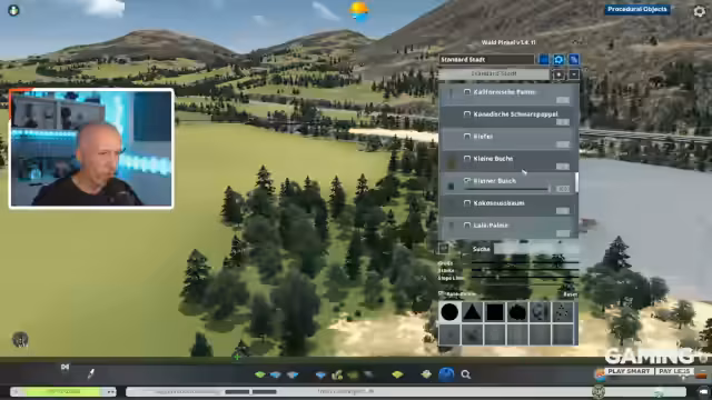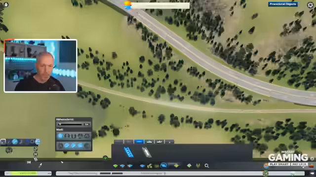 00:06:00Zu Beginn der Arbeit an der Map müssen zuerst die Grafikeinstellungen angepasst werden. Der Fokus liegt auf der Gestaltung des Startgebiets, das fließendes Wasser und eine Autobahnverbindung erhalten soll. Es werden verschiedene Objekte wie Tiere und Rohstoffquellen platziert und wieder entfernt. Beim Anpassen des Terrains stößt der Streamer auf Einschränkungen des Editors, wie beispielsweise die Breite des Flusses, die nicht für einen größeren Staudamm ausreicht.