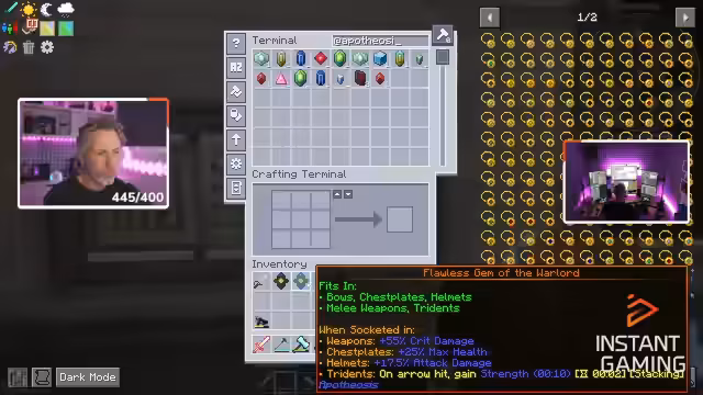05:17:21Der Streamer plant, das verbesserte Schwert auf die nächsthöhere Materialstufe, wie Vibranium, zu upgraden. Da dafür die entsprechenden 'Seeds' fehlen, wird eine Suche nach Vorkommen eingeleitet. Gleichzeitig spricht er über Frustration mit Mod-Updates, die ganze Rezepte entfernen und Stundenlange Arbeit zunichtemachen. Dies führt zur Entscheidung, in fortgeschrittenen Stadien des Let's Plays keine Updates mehr zu machen, um den Fortschritt zu sichern.