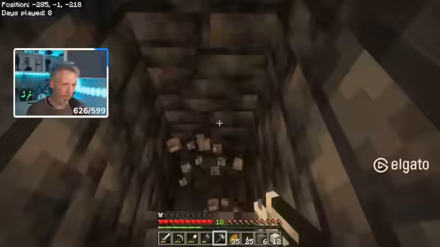 02:08:12Der Stream beginnt mit der Erkundung einer Höhle, in der Gold, aber auch unerwartete Tiere wie Bären entdeckt werden. Die Suche nach der dringend benötigten Kohle gestaltet sich als herausfordernd, da diese seltener erscheint als erwartet. Dabei werden auch andere Ressourcen wie Gravel und Clay in beachtlichen Mengen gefunden. Der Mangel an Platz und Werkzeugen, insbesondere der wenigen Fackeln, macht die weitere Erkundung mühsam und erfordert strategisches Vorgehen.