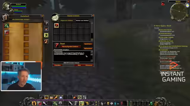 00:20:24Nach dem Level-Up sucht der Streamer nach Lehrern für neue Fähigkeiten, darunter Krieger- und Verzauberungslehrer. Er erwähnt Blutpakt als neue Fähigkeit und ab Stufe 10 verfügbare Skills. Ein Hauptthema ist die Erstellung von Makros für effizientere Kämpfe: Er experimentiert mit Tastenbelegungen (C4 für Sprengstoff, später für Zaubersequenzen) und testet Cast-Sequenzen für Feuerbrand, Verderbnis und Schattenblitz. Probleme mit Aggro-Control und Zauberreihenfolgen werden diskutiert, während er die Nutzung eines Stream Decks für optimierte Makros in Betracht zieht.