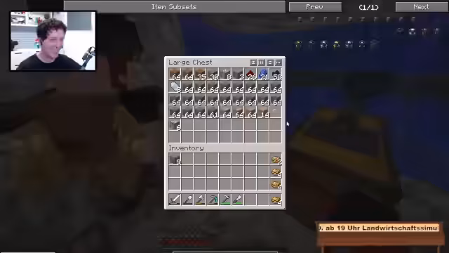 02:15:28Die Erkundung eines Dorfes offenbart zunächst wenig Spektakuläres, bis eine Kiste mit einem Schwert entdeckt wird. Trotz anfänglicher Enttäuschung über den geringen Fund, wird eine weitere Kiste entdeckt, die einen Sattel enthält. Es wird Kohle gefunden, aber das Dorf selbst erscheint nicht ergiebig. In einer Truhe findet sich Nederquartz, eine Taumium-Spitzhacke, Enderperlen, Ender-Lilien-Samen, Deluxe-Cheeseburger, eine Schallplatte und ein Wissensfragment. Die Funde werden als lohnenswert betrachtet. Ein Panda deutet auf eine Spalte im Norden hin, die erkundet werden soll. Eine weitere Schlucht wird entdeckt, und es wird über die Notwendigkeit von Riesenhüten diskutiert, um sich besser zu sehen. Der Fokus liegt auf der Erkundung der Umgebung und dem Sammeln von Ressourcen, wobei die Zusammenarbeit und die gegenseitige Unterstützung im Vordergrund stehen.