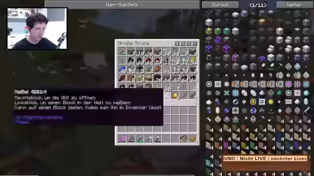 00:00:02Es wird ein neues Projekt namens 'Live in the Woods' auf Gronkhs Server vorgestellt, an dem auch Gronkh selbst, Tobi und Pandoria beteiligt sind. Es wird auf Gronkhs originalem Haus gebaut und wer die Livestreams gesehen hat, kennt den Fortschritt bereits. Es werden keine Subscriber-Bedankungen gezeigt, sondern es ist eine normale Aufnahme. Der Platz für den eigenen Wohnbereich wurde hinter einem Berg ausgewählt, in der Nähe von Gronkh und Tobi. Es wurden bereits Modifikationen wie eine EnderCurry in Betrieb genommen. Das Ziel ist es, ein ME-System zu bauen, um die Lagerprobleme zu lösen. Es wird auch erwähnt, dass man Müscraft-Welten erkunden möchte, um Enderium zu finden. Es gibt eine Hungermod, die das Kochen wichtiger macht und Cheeseburger sind eine Hauptnahrungsquelle. Eine Maschine zur Automatisierung von Cheeseburgern ist in Planung, aber in der nächsten Live-Session mit Gronkh wird man nicht dabei sein, da Urlaub ansteht. Es wird zwischendurch immer mal wieder 'Live in the Woods'-Sessions geben, um die Fortschritte zu zeigen.