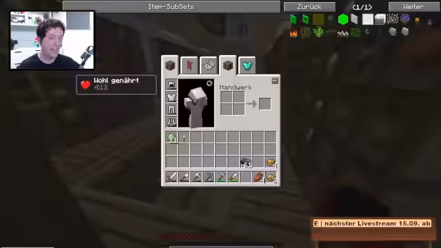 05:56:58Der Streamer betritt die Schmiede und beginnt mit der Herstellung cooler Gegenstände. Er hat bereits einiges vorbereitet und benötigt Magical Wood sowie Kobalt. Er stellt fest, dass Gronkh eine sehr große Schmiede hat. Der Streamer plant, sich auf Hammer, Pickaxe und Schwert zu konzentrieren. Er fragt die Zuschauer, ob er Musik unterlegen soll und überlegt, welche Musik er verwenden könnte. Der Streamer benötigt mehr Gold und Steine für die Waffenherstellung und begibt sich zur Steinetage, um Cobblestone zu holen. Er nimmt 20 Stück mit und hofft, dass Gronkh nicht bemerkt, dass er Ressourcen verschwendet. Der Streamer möchte eine Schwertform herstellen und empfiehlt, das Spiel auf Englisch zu spielen, um Tutorials leichter finden zu können. Er benötigt Manülle für die Schwertklinge und Ardite für den Griff.