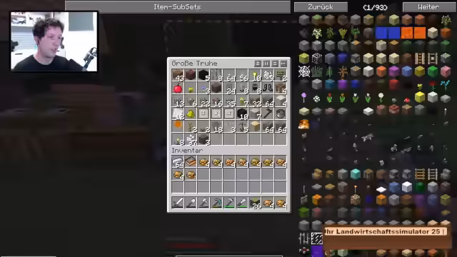 00:15:10Es wird ein Überraschungsbesuch bei Gronkh im Stream angekündigt. Die Folgen werden chaotischer und hart geschnitten sein. Es wird Gronkh im Discord begrüßt und festgestellt, dass er sich in der Nähe befindet. Es wird erwähnt, dass man sich Burger von Gronkh 'geliehen' hat. Es wird über die Automatisierung der Burgerproduktion gesprochen. Es werden Enderperlen und Photovoltaikzellen gefunden. Es wird über Rohstoffe für einen Reaktor und das ME-System gesprochen. Es wird ein unberührte Farming-Welt gezeigt. Es wird ein unterirdischer Crabby-Bergbau gezeigt. Es werden Diamanten zurückgegeben, die man 'geklaut' hat. Es wird über die Effizienz von Solarzellen gesprochen. Es wird über Steinbruch-Blöcke von Buildcraft gesprochen. Es wird über Item-Leitungen von Ender.io gesprochen. Es wird über die Möglichkeit gesprochen, die ganze Welt auszuhöhlen und unterirdische Häuser für Zuschauer zu bauen. Es wird über die Serverperformance gesprochen und die Idee eines gemeinsamen Schlossprojekts entwickelt.