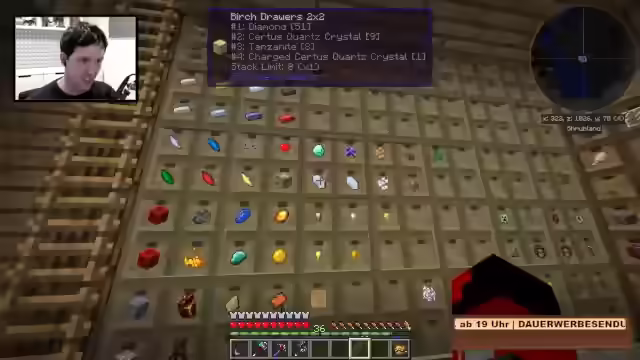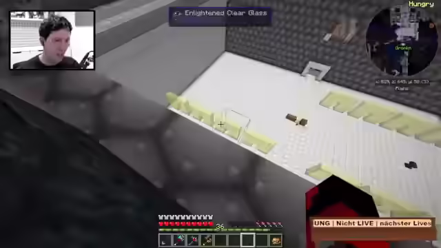 00:34:56Es wird über die Beschaffung von Rohstoffen diskutiert. Gronkh produziert Rohstoffe nicht in Massen und muss Quarz suchen. Er hat ein MESIS-System gesehen, das eine Quarry im Deep Dark und im Nether hat. Sie wollen aber auch noch unterwegs sein. Wenn man alles hat, wird es langweilig. Es ist wie im Film Matrix, wo Neo am Ende alles kann und die Herausforderung fehlt. Standardsachen wie Steine werden automatisiert hergestellt. Gronkh findet Quarries zu "over", weil man dann nichts mehr machen muss und nur noch wartet. Er freut sich über jedes Quarzvorkommen. Er macht einiges Offscreen, weil es sonst zu lange dauern würde, wie das Experiment mit dem Taumtum-Auge. Er streamt sonntags ohne Aufnahme. Tobi war mal dabei, aber war am Sonntag verhindert. Er musste FIFA 18 neu schneiden, weil die Tonspuren verrutscht waren. Er hebt einen riesigen Raum aus, was Spaß macht und eine Abwechslung ist.