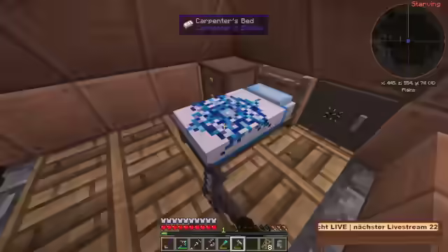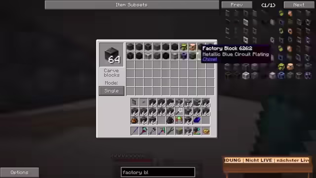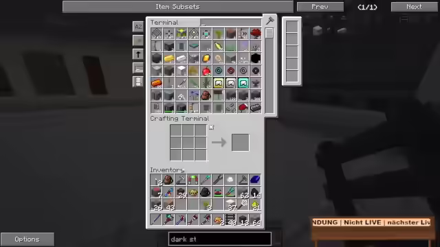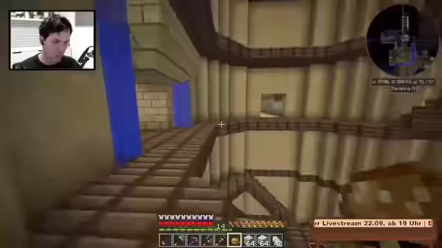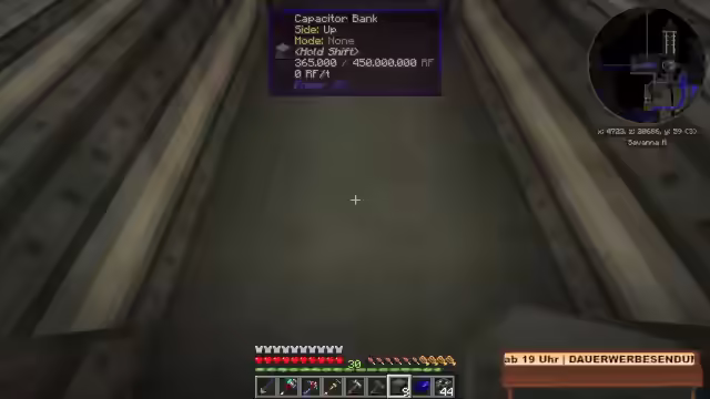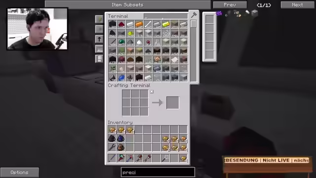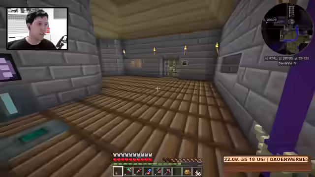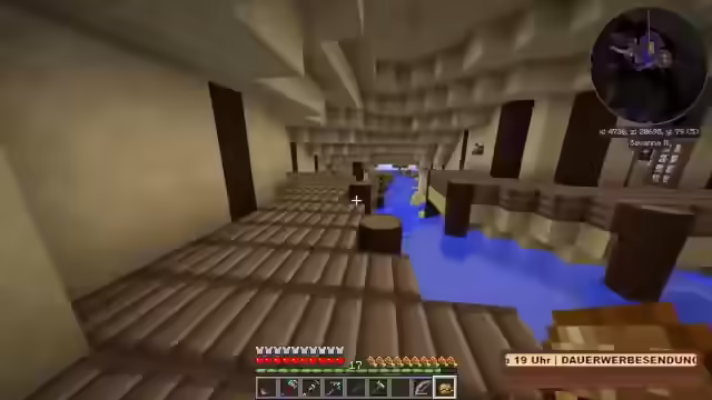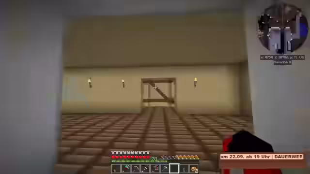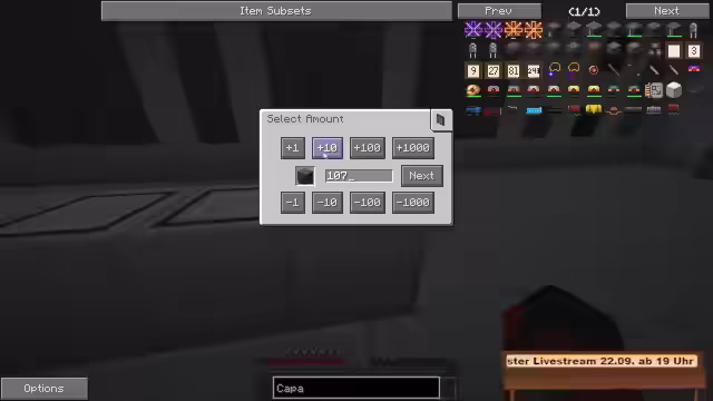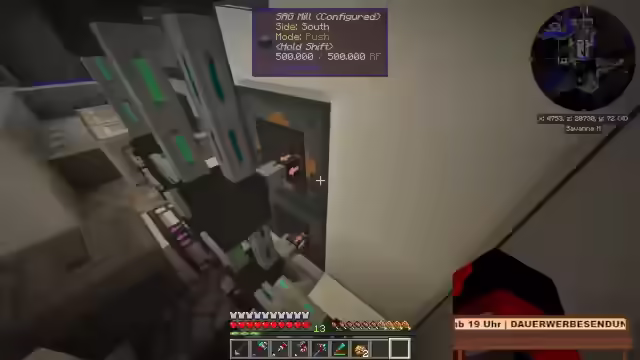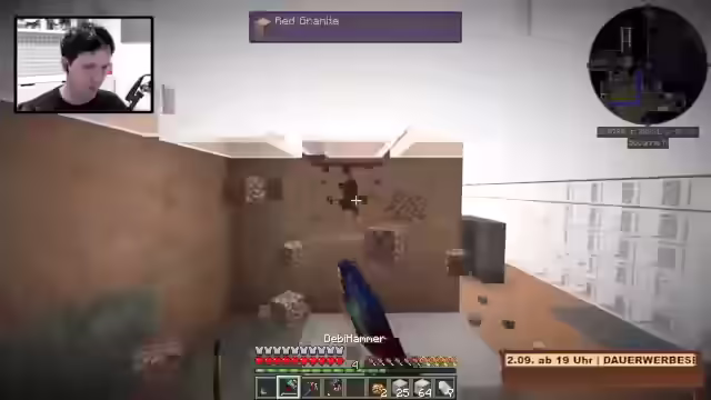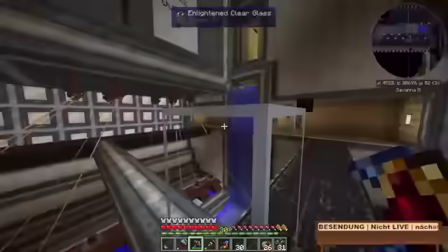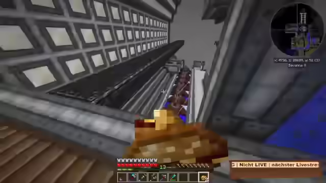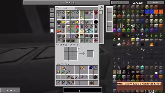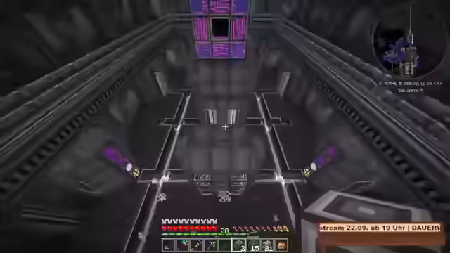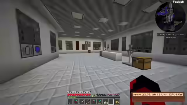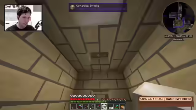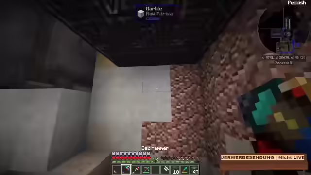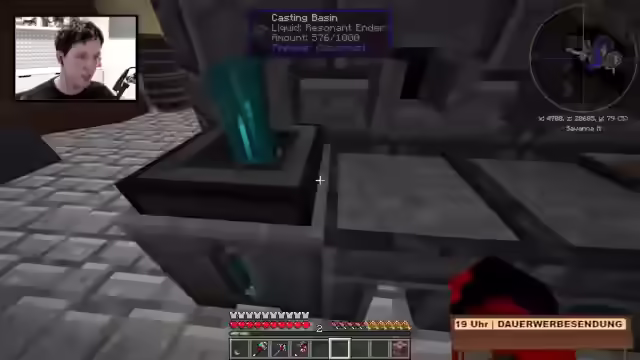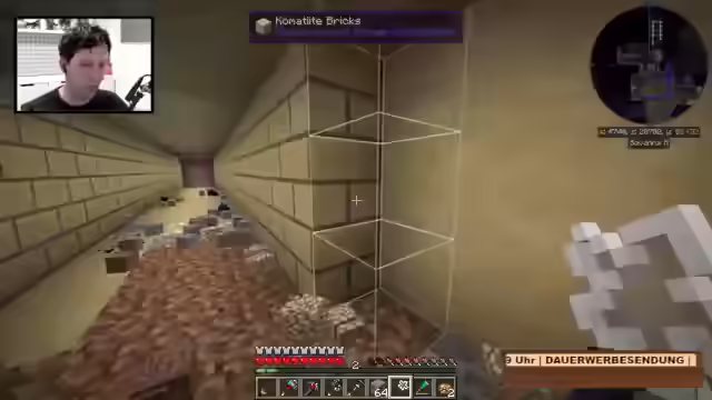 08:47:27Es geht weiter in der Höhle, und es wurde eine kleine Ruine an der Stadtgrenze gebaut. Im Livestream am Sonntag um 19 Uhr soll weitergebaut werden. Die Stadt vor der Höhle und die Glowstone-Decke sollen fertiggestellt werden. Es wurde Zertesquatz abgebaut. Unter der aktuellen Struktur befindet sich die Verarbeitung, die drei Etagen hoch werden soll. Der Stil des Raumes soll an eine Fabrik mit Eisenplatten an den Wänden erinnern. Ein ME Crafting Terminal und ein Cable werden mitgenommen, um die Verarbeitung anzuschließen. Es gibt auch ein ME-Wireless-Terminal, aber nicht zum Craften. Die Verarbeitung soll so groß wie möglich sein. Es wird überlegt, einen Unterraum im Garten Eden für die Blümchenanlage zu bauen, um das Thema Garten Eden nicht zu verwerfen. Die aktuelle Anlage ist eher batteriemäßig. Die Raumverkleidung wird mit neuen Technologien schnell durchgeführt.