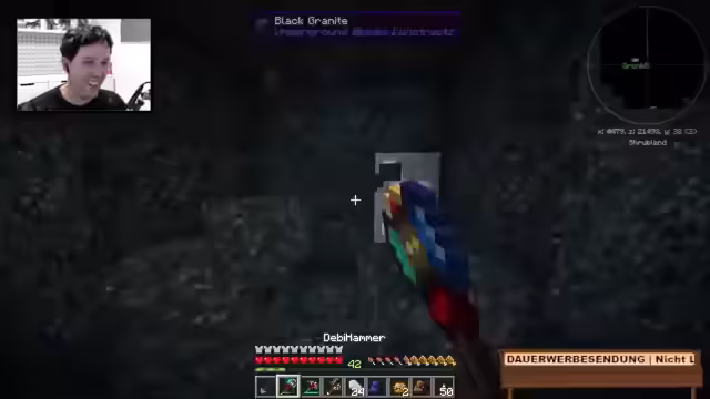 04:27:20Es wird die Ladestation gesucht. Der Streamer hat einen Schatz gefunden, nämlich Tobias. Es wird sich über die Schneise in der Welt lustig gemacht, die der Streamer gebuddelt hat. Es wird ein Lehrgang für Hammerbauen vorgeschlagen. Es wird festgestellt, dass die Erde sich schon mal richtig gelohnt hat. Es wird Quarz gefunden. Es wird Erde für den Steinbruch benötigt. Es wird ein Lavafluss mit Holz verstopft. Es wird sich gefragt, wo Tobi ist. Ein Skelett rennt in die Lava. Es wird ein neues Gebiet gesucht. Der Streamer nimmt nur Erde und Büsche mit. Der Streamer sprengt die Höhle. Es werden Diamanten gesucht. Der Hacker ist schnell. Es wird festgestellt, dass das Goldschwert weg ist. Es wird sich gefragt, ob das Schwert aufgeladen werden muss. Eine Hexe wird gefunden. Es wird ein Loch bis nach Pakistan gegraben, aber es kommt nichts. Es wird ein fettes Wasserloch gefunden. Es wird sich gefragt, ob man da rausschwimmen kann. Es wird festgestellt, dass hier schon jemand war. Es ist wenig an Diamanten und anderen Rohstoffen vorhanden. Es wird Zertus Quartz gefunden. Es wird sich gefragt, was am wichtigsten für das ME-System ist. Es wird festgestellt, dass es nur Quarz und Zertus Quartz ist. Es wird sich festgestellt, dass Diamanten bisher nur einen Vorkommen gefunden haben. Es wird gesagt, dass es in dem Biom einfach nichts gibt. Es wird sich über die Rohstoffe geleckt. Es wird sich gefragt, warum die Gänge so gerade sind. Es wird vermutet, dass hier mal jemand durchgewalzt ist. Es wird ein Gang von den alten Menschen gefunden. Der Streamer muss seine Taschen leer machen.