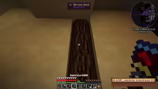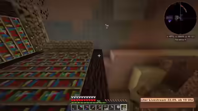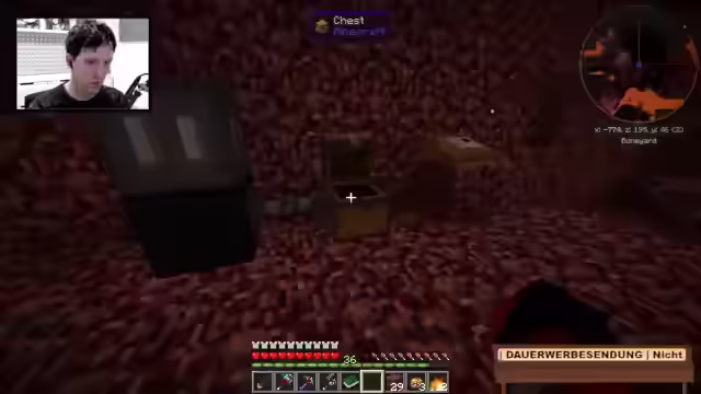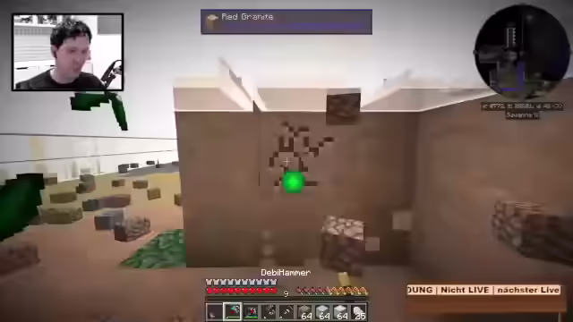 04:47:18Die Session beginnt mit der Erkundung einer neuen Gegend, etwa 900 Meter vom Zuhause entfernt, bei der nach Rohstoffen gesucht wird. Dabei werden Zertusquarz, Conduit-Probes und Ender-Lily-Seeds gefunden. Während der Erkundung wird ein Dorf entdeckt, das bereits geplündert wurde. Es wird der Versuch unternommen, sich mit einem anderen Spieler, Tobi, zu treffen, was sich jedoch aufgrund der komplexen Höhlensysteme und Schluchten als schwierig erweist. Die Spieler verlieren sich gegenseitig auf der Karte und suchen nach einem Weg, wieder zusammenzufinden, wobei sie verschiedene Höhlen und Schluchten erkunden und Rohstoffe wie Diamanten sammeln. Die Navigation gestaltet sich schwierig, und es kommt zu einigen Missgeschicken, wie dem Fallen in Lava. Trotz der Schwierigkeiten und einiger Ablenkungen durch Rohstoffe wie Zertusquarz setzen die Spieler ihre Suche fort, um wieder zusammenzufinden und den Weg zurück nach Hause zu finden. Dabei werden Spinnenspawner entdeckt und abgebaut und über die hohe Spawnrate von Büschen gewitzelt, was Tobi angelastet wird.
