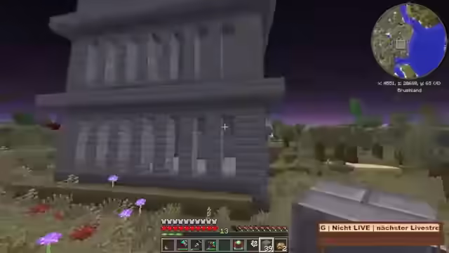 08:39:07Es gibt eine neue Merch-Idee von Pandoria, bei der Debitor alles klaut. Es wird ein Magnet verwendet, um Dirt einzusammeln. Es wird überlegt, die Mod für die Baumbepflanzung zu entfernen, da sie manchmal nervig ist. Es wird ein Steinboden in einem Haus verlegt, um einen langweiligen Look zu erzeugen, der aber noch geändert wird. Fenster werden eingesetzt, und es wird überlegt, einen Bürgersteig und eine Straße zu bauen. Es wird überlegt, ein Bauteam auf dem Server zu haben. Die Plot Workers haben mehr gebaut, als verwendet wurde. Die Innenräume der Häuser müssen nicht detailliert sein, da sie verlassen und verfallen sind. Die Lianen wachsen komisch um die Ecke. Das Haus soll von oben kaputt gemacht werden, leicht angeschrägt. Es werden Viererfenster eingesetzt. Im Haus können Bäume wachsen. Das Haus ist nicht so lang, wie es breit ist, wegen des Eingangs. Es wird ein Sonnenuntergang beobachtet. Es wird eine weitere Ebene auf das Haus gebaut. In der Mitte wird ein stylisches Element anstelle eines Fensters eingebaut. Die Steine, die beim Bauen herausploppen, sind überflüssig. Es wird Vanilla gebaut. Es werden Treppen eingebaut. Das erste Gebäude ist etwas weiter als vorher. Es wird gefragt, wo es weitergehen soll: Bibliothek, ME-System oder Höhlen-Style.