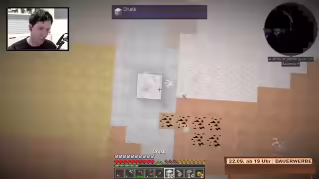 04:11:37Es wird überlegt, was in der Kiste ist, nämlich der gesammelte Müll. Der Streamer sammelt Büsche. Die Mine wird als langweilig empfunden. Es wird festgestellt, dass man sich bei den Sachen, die man in die Truhe legt, konzentrieren muss, weil sonst alles weg ist. Der Speed wird ausgeschaltet. Es wird sich gefragt, wofür Peridot-Erz gebraucht wird. Spawner werden entdeckt. Es wird festgestellt, dass das Theatrosquart sich schon gelohnt hat. Erik läuft alleine rum, weil er nicht weiß, wo die anderen sind. Ein Kürbis wird gezeigt. Es wird sich gefragt, warum nichts mitgenommen wird, da kein Platz mehr ist. Tobi hat noch nie einen anderen Rucksack gecraftet. Es werden Goldbüsche und Sandsburybüsche gefunden. Ein Freeze tritt auf. Es wird vermutet, dass es mit Tobi zusammenhängt. Es wird nach Zertus Quartz gesucht. Es wird sich darüber lustig gemacht, dass Eriks ME-System abgepumpt wird. Es wird beschlossen, Disketten zu machen. Die Ursache für den Spam soll behoben werden. Der Streamer wird aufgefordert, Bären wegzuschmeißen.