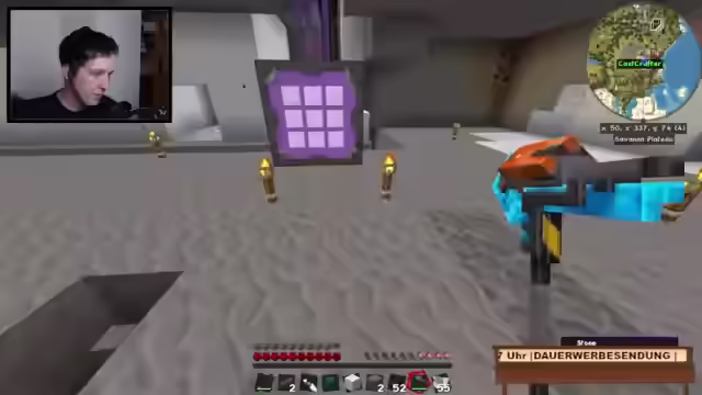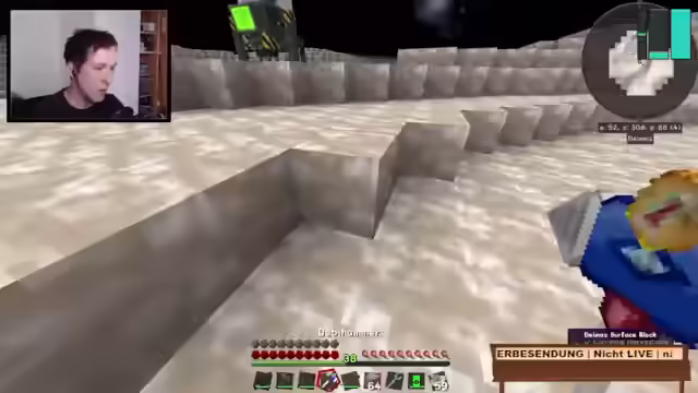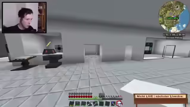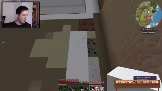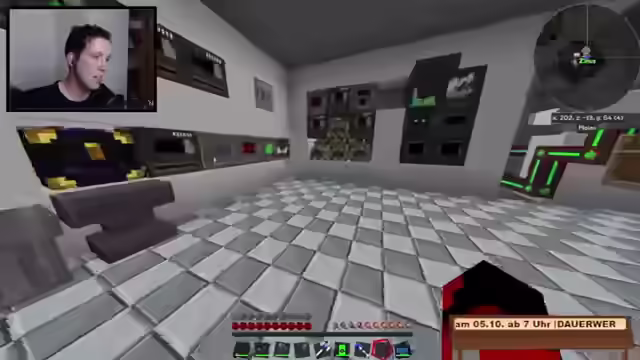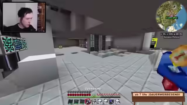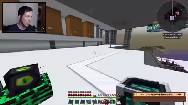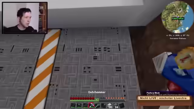 07:48:50Die Session beginnt mit der Feststellung, dass der Server nach den vorherigen Problemen nun stabiler läuft. Es wird vermutet, dass das Provozieren des Servers zu seltsamen Verhaltensweisen führt. Ein Zombie namens Tommy erscheint und verhält sich ungewöhnlich. Es wird ein Plan für die Positionierung einer Wand im Haus erstellt. Ein Zuschauer wird gegrüßt. Es wird ein Teppich-Boden-Verlege-Experte gesucht. Es wird versehentlich eine Form auf dem Boden erzeugt, die wie ein Hakenkreuz aussieht, was zu Diskussionen führt. Es wird eine Raketenstartetage gebaut und Factory Blocks werden für den Bau verwendet. Der Wunsch, alle 105 Rezepte im Autocrafting zu haben, wird geäußert. Der Launcher stürzt ab. Es wird festgestellt, dass der Boden nicht optimal beleuchtet ist. Es wird festgestellt, dass genügend Glowstone vorhanden ist, um die Beleuchtung zu verbessern. Ein Blaze Spawner wird versehentlich auf das Terminal gestellt. Es wird vermutet, dass Licht das Spawnen von Monstern verhindern könnte. Es wird festgestellt, dass die Performance besser läuft, nachdem einige Kleinigkeiten erneuert wurden. Es wird ein Steinkasten mit einem E-System gebaut. Es wird festgestellt, dass die Quarry noch keinen Vulkan gefunden hat. Es wird überlegt, wie das Haus weitergebaut werden soll und eine Vorlage wird gezeigt.