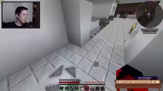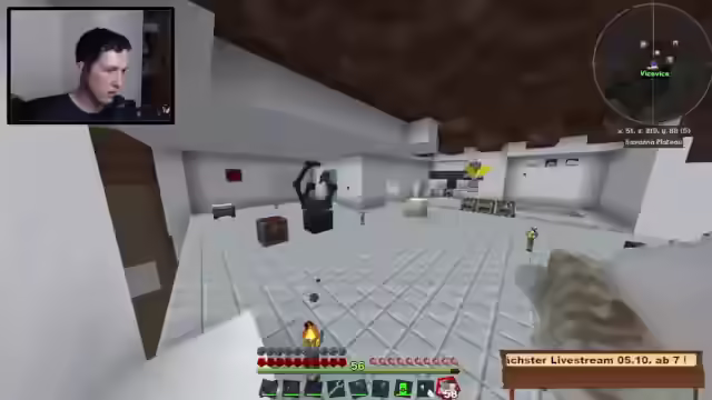03:40:23Es wird mit dem Hausbau fortgefahren, insbesondere mit dem Crafting-Raum. Zuschauer können weiterhin Kommentare und Vorschläge einreichen. Es wird erneut auf den Livestream am Sonntag um 18:30 Uhr hingewiesen. Zoom ist nun auf "Ihr" eingestellt. Es wird die Idee eines Kill-Switches im Livestream weiterverfolgt. Für den Raketenraum auf der linken Seite des Fensters soll etwas Cooles gebaut werden. Eine Raffinerie soll gebaut werden, um Fuel herzustellen. Es werden gebratene Fische für die Herstellung verwendet. Es wird überlegt, ob die schwarz-weißen Blöcke für die Abschussrampe verwendet werden sollen. Es wird ein Umweg für die Fuel-Leitung geplant, wobei die Decke als Anhaltspunkt dient. Die Sättigung ist nun dauerhaft aktiv. Es wird geplant, die restliche Wand zu gestalten und Tanks für Öl und Fuel zu platzieren, um den Überblick über die Mengen zu behalten. Es wird ein Tank platziert und der Platz wird angepasst.