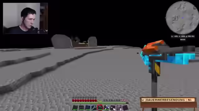 00:55:10Es wird darüber gesprochen, wie Meteoriteneinschläge live aussehen und wie man abgekühlte Meteoriten erkennt. Zombies in der Mobfarm droppen selten benötigte Materialien. Eine Landekapsel wird entdeckt. Es wird über die Schwierigkeit des Raketenbaus und die benötigte Menge an Meteoric Iron diskutiert. Die Möglichkeit, sich Material vom Köpf zu leihen, wird in Betracht gezogen. Ein Krater auf dem Mond wird entdeckt, und es wird vermutet, dass dort eine Nuke getestet wurde. Das Abbauen von Meteoric Iron im Krater gestaltet sich schwierig. Die Menge des gefundenen Meteoric Iron wird gezählt, und es wird beschlossen, zurückzukehren, um das Material zu verarbeiten. Die Sinnhaftigkeit der Suche im Spawn-Bereich wird hervorgehoben. Die Menge an Meteoric Iron wird überprüft und es wird festgestellt, dass bereits einiges vorhanden ist. Der Plan, ins Metruinenfeld zu fliegen, um dort Meteoric Iron zu farmen, wird erläutert.