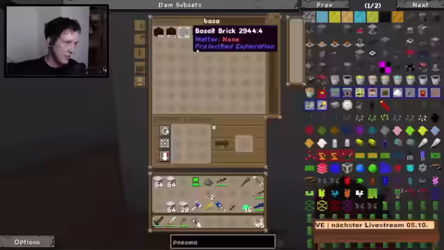 09:30:34Der Streamer beginnt eine neue Folge von Minecraft Novus mit dem Chaos Crafter und setzt den Hausbau fort. Sie planen, die Front des Hauses zu gestalten und verwenden Basalt und Glas. Eine Query in Stadtnähe liefert Basalt. Der Krater wird zugemacht. Es wird ein Vulkan-Prank geplant, bei dem der Vulkan abgebaut und mit Erde bedeckt wird, sodass andere Spieler denken, er war nie da. Der Streamer baut den Vulkan ab und entfernt Basalt. Er macht ein Foto für das Thumbnail und den Titel. Es wird festgestellt, dass es noch weitere Vulkane auf der Map gibt, die im nächsten Stream entfernt werden sollen.