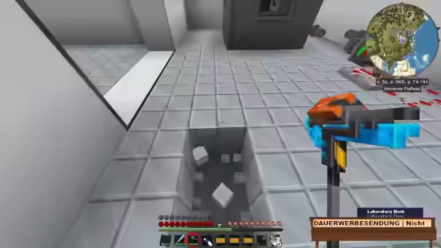 03:29:05Es wird das Problem der geringen FPS-Zahl in der Nähe des Hauses angesprochen, das möglicherweise durch die Mobfarm verursacht wird. Durch das Entfernen aus dem Haus verbessern sich die FPS deutlich. Es wird überlegt, die Mobfarm abschaltbar zu machen. Es wird ein Deep Dark geplant. Es wird ein Zombie für die Spritze gefangen, um den Saturation-Effekt zu aktivieren. Der Teleporter wird als zu OP empfunden und daher nicht verwendet. Stattdessen werden die Planeten-Portale bevorzugt. Ein Saturation-Modul wird gebaut, um den Hunger dauerhaft zu stillen. Es wird ein Radius und eine Höhe für den Effekt eingestellt. Ziel ist es, nie wieder Hunger zu haben. Es werden Laboratory Blocks und ein Bilderswund platziert.