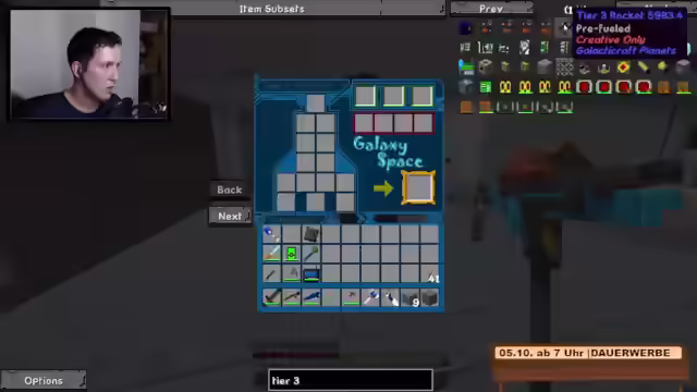 08:08:42Die Folge beginnt mit dem weiteren Ausbau des Hauses. Es wird festgestellt, dass das Entfernen eines Spawners die Performance verbessert hat. Der nächste Schritt für die Rakete, der Tier 5 Plan, soll gefunden und Rohstoffe gefarmt werden. Es wird betont, dass das Terraforming anderer Planeten stattfindet. Es wird beschlossen, nach Süden zu fliegen, um einen Dungeon mit dem benötigten Plan zu finden. Es wird betont, dass eine T8-Rakete im Haus stehen soll. Es wird angekündigt, dass im Livestream viel Hausbau stattfinden wird. Der Livestream findet immer sonntags um 18:30 Uhr statt. Es wird darauf hingewiesen, dass das Modpack in der Videobeschreibung verlinkt ist. Es wird vermutet, dass das Texturpaket ebenfalls enthalten ist. Es wird ein Dungeon entdeckt und erkundet. Es werden Raketensachen gesucht, die man benötigt. Es wird erklärt, dass manche Barren gecraftet und manche gefunden werden müssen. Es wird ein Turret entdeckt. Es wird erwähnt, dass jemand geschrieben hat, dass im letzten Dungeon wohl schon an der Kiste vorbeigelaufen wurde. Es wird betont, dass die Dungeon-Kiste immer an den Bossraum angeschlossen ist. Es wird ein Bossraum gefunden. Es wird festgestellt, dass der Schlüssel bereits vorhanden ist. Es wird festgestellt, dass man nicht zu der Kiste durch kann, wenn der Boss noch da ist. Es wird teleportiert, um in die Workbench zu gelangen. Es wird erwähnt, dass im Livestream Hausbau gemacht wird. Es wird betont, dass es geil ist, eine riesige Rakete zu haben. Es wird festgestellt, dass die Rakete bereits vorhanden ist.