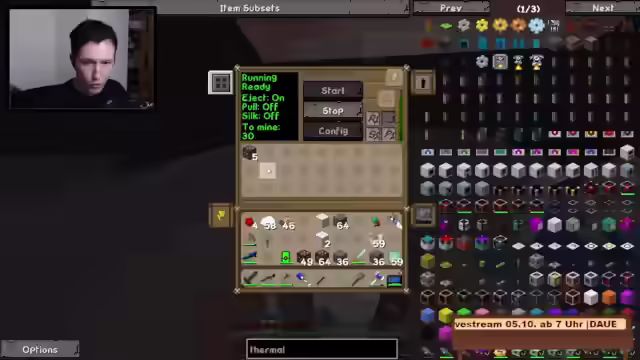09:09:03Der Streamer beendet den vorherigen Stream mit dem Hausbau und beginnt einen neuen Minecraft Novus Stream mit Klaus Cropter. Er zeigt den umgebauten Raum mit einer Rakete und einem Pool, der sich automatisch befüllt und entleert. Der Pool hat Schwämme, um Wasser aufzusaugen, falls etwas undicht ist. Der Berg wurde vom Heiko bearbeitet und soll eine Klippe bekommen. Der Streamer geht in die Pneumatic Craft Abteilung, um einen Fahrstuhl für die Rakete zu bauen. Er benötigt eine Charging Station für sein Amadron-Tablet, um mit Dorfbewohnern zu handeln und Emeralds zu bekommen. Er verwendet Kohle, um das Gerät zu betreiben, und hat eine Redzone-Schaltung eingerichtet, um den Ofen bei zu hohem Druck abzuschalten.