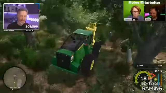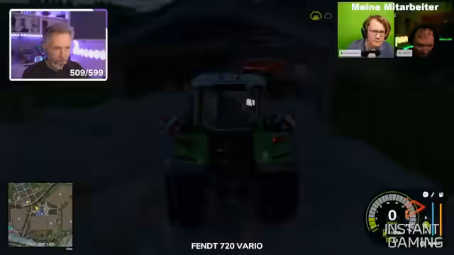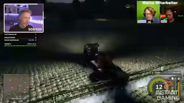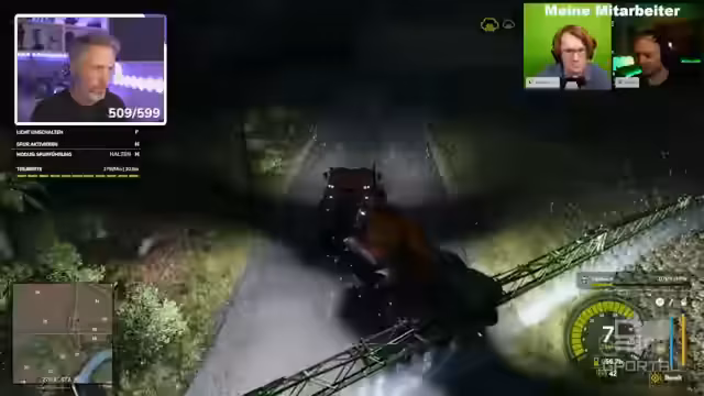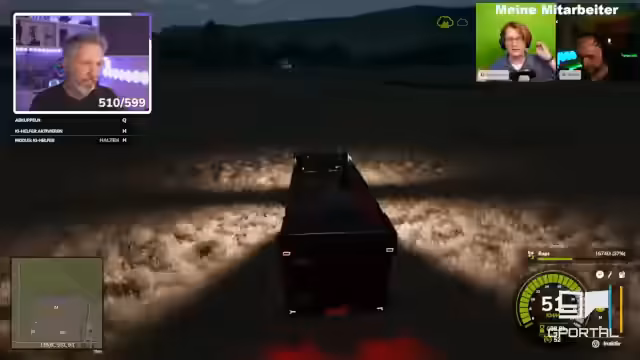 03:17:44Es wird die verbleibende Zeit für einen Auftrag überprüft und die Effizienz der Zusammenarbeit gelobt. Der Chat gibt den Tipp, die Rundumleuchte am Drescher einzuschalten, um dem Traktorfahrer zu signalisieren, dass er bald voll ist. Ein spezieller Farming Controller für 190 Euro wird entdeckt. Die rücksichtlose Fahrweise der KI-Autos im Spiel wird kritisiert. Es wird die Frage aufgeworfen, ob man Bauern überhaupt noch Bauer sagen darf. Nach getaner Arbeit wird das Feld zur Abgabe gebracht. Die Einnahmen für den abgeschlossenen Auftrag werden begutachtet und es wird überlegt, ob ein weiteres Labyrinth besucht werden soll. Das Spiel verwandelt sich nachts mit Regen und Gewitter in ein Horrorszenario. Die Spieler wünschen sich eine bessere Physik und mehr Interaktionsmöglichkeiten im Spiel. Es wird diskutiert, ob man die Reste nach dem Dreschen einsammeln oder auf dem Feld liegen lassen soll. Die Detailarbeit im Spiel wird gelobt, aber auch die Frage aufgeworfen, wie man die Nacht überspringen kann, da noch kein Haus vorhanden ist. Schließlich wird ein Grundstück mit Haus für 172.000 gekauft, was neue Möglichkeiten eröffnet. Das Schlafen im Spiel ist jedoch verbuggt und funktioniert nicht.