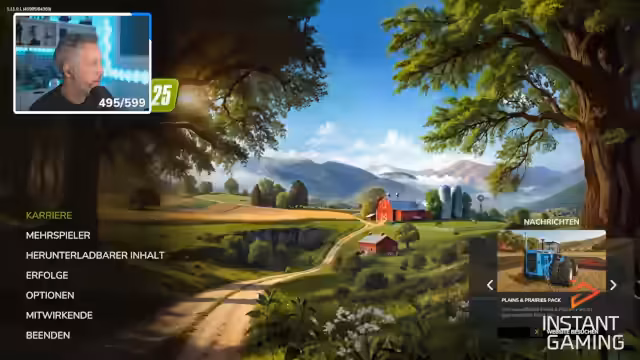 00:00:00Der Livestream beginnt mit einer herzlichen Begrüßung der Zuschauer und der Vorstellung der heutigen Gäste, Joe und Stefan, für eine Runde Landwirtschafts-Simulator 25. Es werden Glückwünsche an Kratios für seinen ersten Platz ausgesprochen und zahlreiche Zuschauer namentlich begrüßt. Ein kurzer Austausch über das Befinden und die Aktivitäten des Tages findet statt, wobei die anstrengende, aber positive Unterwassertherapie und Lasertherapie eines Zuschauers erwähnt wird. Es wird ein neues Stream Deck für den Landwirtschafts-Simulator 25 vorgestellt, das die Bedienung vereinfachen soll. Anschliessend wird die Soundeinstellung angepasst und auf mögliche Lautstärkeunterschiede hingewiesen. Es wird kurz auf die Sehnscheidentzündung eines Zuschauers eingegangen und das Stream Together Feature mit RGB erläutert, welches bereits mehrfach genutzt wurde. Die Einbindung von Joe per Facecam wird demonstriert, wobei die synchrone Übertragung durch Streamtogether hervorgehoben wird. RGB wird ebenfalls hinzugefügt, wobei anfängliche Qualitätsprobleme der Kameras thematisiert und durch Anpassung der Einstellungen behoben werden. Es wird ein Intro-Video des Spiels erwähnt, das gemeinsam angeschaut werden soll. Das Spiel wird geschlossen und neu gestartet, um das Intro gemeinsam zu erleben.