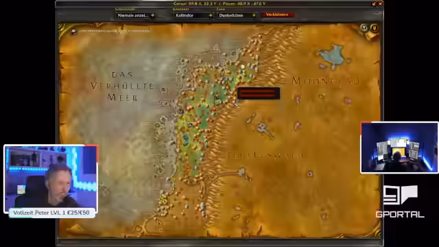 00:42:10Der Streamer spielt weiter in World of Warcraft und interagiert mit anderen Spielern. Er trifft auf Mori und Peter, mit denen er zusammenarbeitet. Er findet die Kiste, die er abgeben muss, und erreicht schließlich die Dunkelküste. Dort angekommen, beginnen sie mit den Quests in der Region Bashal'aran. Der Streamer und seine Mitspieler tauschen Items aus und sammeln Ohrringe für eine gemeinsame Quest. Er betont, dass er sich als Heiler verpflichtet fühlt, wenn Teammates sterben.