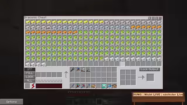 01:54:02Es wird eine automatische Erzverarbeitungsanlage gebaut, wobei besonderer Wert auf das Design gelegt wird. Es werden Auto-Crafting-Tables mit Filtern verwendet, um verschiedene Erze wie Eisen, Aluminium, Kupfer, Zinn und Gold zu sortieren. Die Anordnung der Anlage ist nicht unbedingt die effizienteste, sondern soll optisch ansprechend sein. Eine bestehende Fabrik aus Minecraft Doors dient als Inspiration für eine komplizierte, aber stilvolle Anlage. Die erzeugten Essence Berries werden in das ME-System geleitet und weiterverarbeitet. Item Frames werden zur Kennzeichnung der Filter eingesetzt, und es wird überlegt, wie die Anlage optimiert werden kann, obwohl der Fokus auf dem visuellen Eindruck liegt. Es wird festgestellt, dass die Augmentierungen nicht wie erwartet funktionieren, und die Zuschauer werden um Hilfe gebeten, um das Problem zu lösen. Trotz einiger anfänglicher Fehler bei der Filterung läuft die Anlage schließlich an und verarbeitet die Erze automatisch.