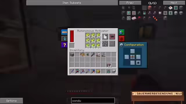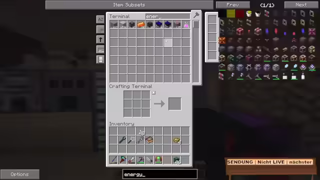 07:59:53Ein Interface ist bereits vorhanden, aber es wird ein weiteres gebaut. Recursive Networking und ein Assembler werden benötigt. Es wird erwähnt, dass es geil ist, so viel zu haben, aber es wird langsam eng. Der ME-Core wird gebaut. Man könnte die Assembler daneben bauen. Es wird erwähnt, dass es brennt. Es wird mehr auf Fläche gebaut, da noch nicht so viel vorhanden ist. Es fehlt noch ein Assembler und Step of Traveling wird benötigt. Das Interface teilt die Bauaufträge auf die einzelnen Assembler auf, was viel Platz zum Bauen bietet und sehr effizient ist. Der Kern hat 160 F plus und benötigt 110 ohne alles. Es werden Kabel benötigt, um das Autocrafting anzuschließen. Es wird überlegt, wie viel Strom das verbraucht, wenn das Kabel verlängert wird. Es werden Rohstoffe benötigt, aber irgendwann sind sie leer. Es werden Wolle und Glowstone benötigt. Es wird Smart Cable und normale Konduits benötigt, die auch weiß sind. Es werden weiße Kabel benötigt. Es wird erwähnt, dass die Farbe auch wieder rausgewaschen werden kann. Es wird darauf geachtet, dass mehr Strom verbraucht wird. Die Kabel leuchten und sind verbunden. Der ME-Kern läuft auch noch und hat einen Speicher. Der Kern zieht sich voll. Es wird weniger Strom verbraucht als vorher. Es wird 4f mehr verbraucht, wenn das System arbeitet. Die Anlage wurde erfolgreich zusammengebaut. Das ME-System und die Automatisierung gehen langsam in die richtige Richtung. Es wird noch einmal alles erklärt, wenn die Automatisierung richtig aktiviert wird. Es muss noch geguckt werden, wie Tunneling geht. Es wird noch ein Thermoelectric Generator gebaut. Es fehlen Sticks, Konstantin und Copper und Ferris. Es wird erwähnt, dass der Hammer kaputt gegangen ist. Es läuft alles und es sind Schneewelle drin. Es werden noch mehr Eimer für die ganze Anlage zum Strom sammeln benötigt. Es werden noch Aufbauen auf YouTube angeguckt, um das Ganze effizienter zu machen. Es wird um eine Bewertung gebeten. Es wird erwähnt, dass es am Sonntag um 19 Uhr einen Stream mit After Humans gibt und am Samstag eventuell den Millennium Falcon Stream von Lego.